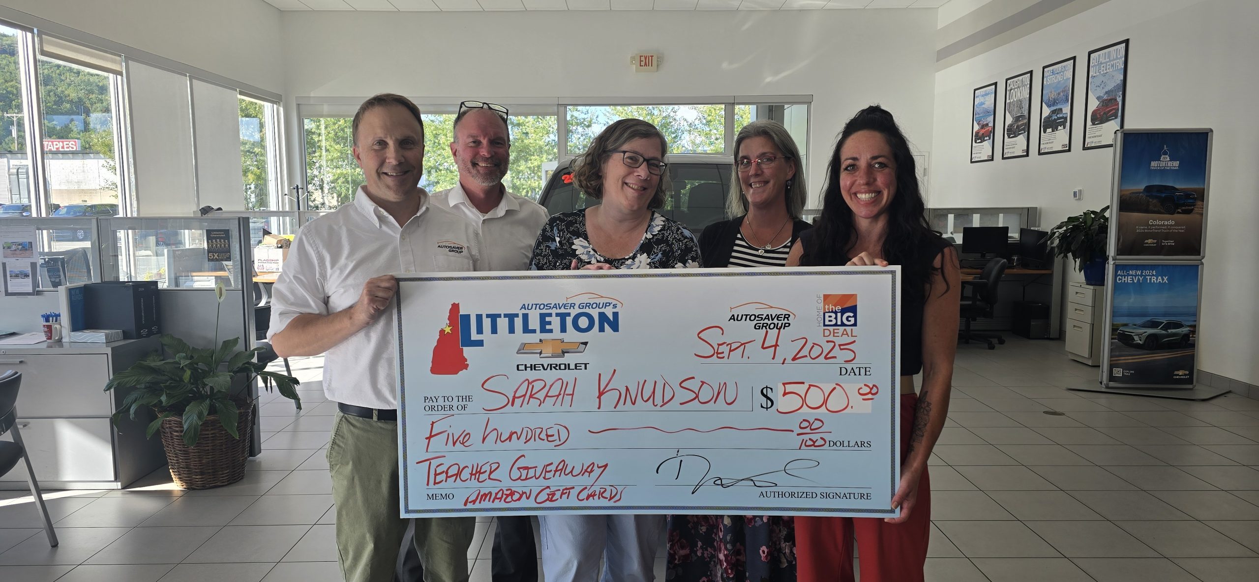 At Littleton Chevrolet, we are so excited to celebrate the amazing teachers in our community! We’re thrilled to announce our first Teachers Giveaway winner, the wonderful and dedicated, Sarah Knudson from Woodsville Elementary School.