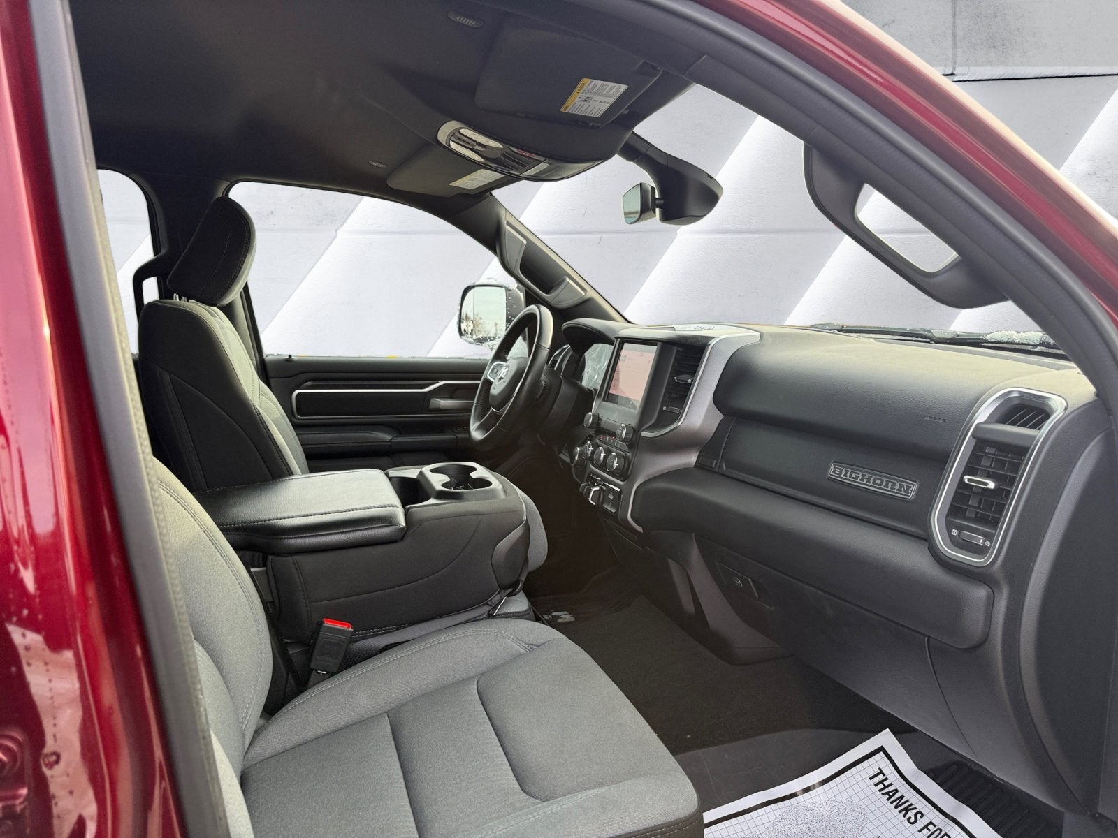 . 1500 Big Horn/Lone Star, 4D Crew Cab, 3.6L V6 24V VVT, 8-Speed Automatic, 4WD, Delmonico Red Pearlcoat, Black w/Cloth 40/20/40 Bench Seat or Cloth 40/20/40 Bench Seat, 2nd Row In Floor Storage Bins, 4G LTE Wi-Fi Hot Spot, Apple CarPlay, Auto-Dimming Exterior Driver Mirror, Auto-Dimming Rear-View Mirror, Big Horn Badge, Big Horn Level 1 Equipment Group, Black Premium Power Mirrors, Black Trailer Tow Power Mirrors, Bluetooth® Handsfree Phone & Audio, Class IV Receiver Hitch, Connectivity - US/Canada, Convex Wide-Angle Exterior Mirror Insert, Electric Shift-On-Demand Transfer Case, Exterior Mirrors Courtesy Lamps, Exterior Mirrors w/Heating Element, Exterior Mirrors w/Supplemental Signals, For Details, Visit DriveUconnect.com, For More Info, Call 800-643-2112, Front Fog Lamps, Global Telematics Box Module (TBM), Glove Box Lamp, Google Android Auto, Heated Front Seats, Heated Steering Wheel, Passenger Sun Visor w/Illuminated Mirror, Power-Folding Mirrors, Quick Order Package 23Z Big Horn, Radio: Uconnect 5 W w/8.4 Display, Rear Dome w/On/Off Switch Lamp, Rear Power Sliding Window, Rear Window Defroster, SiriusXM Radio Service, SiriusXM Satellite Radio, Trailer Brake Control, Trailer Light Check, Trailer Reverse Steering Control, Trailer Tire Pressure Monitoring System, Trailer Tow Group, USB Host Flip.